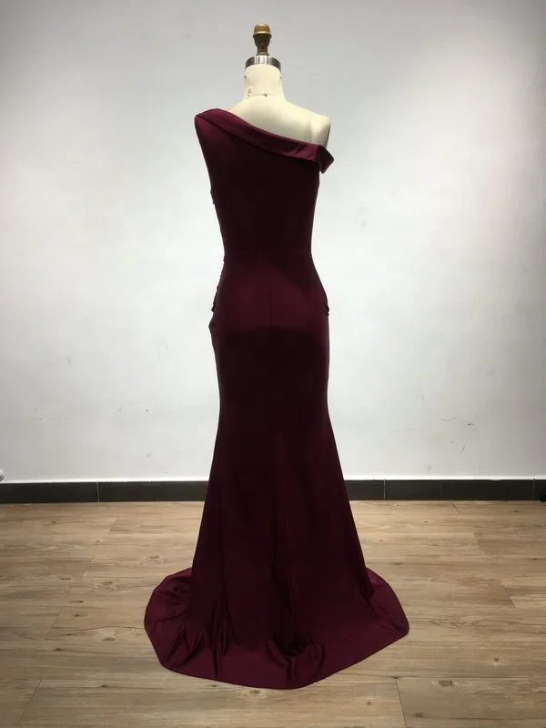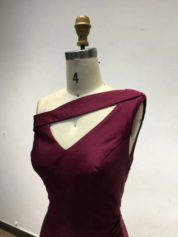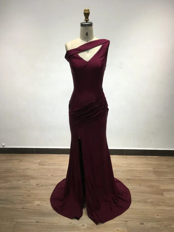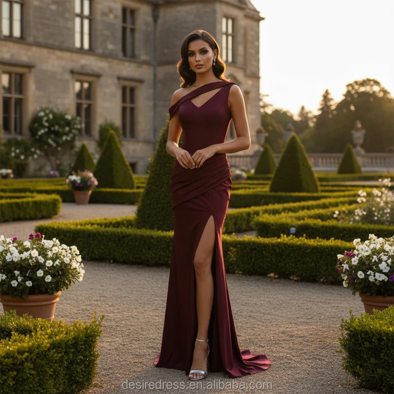USAN021 Luxury Satin One Shoulder Mermaid Wedding Dresses for Bride Elegant Wine Red High Slit Dresses Women Party Evening